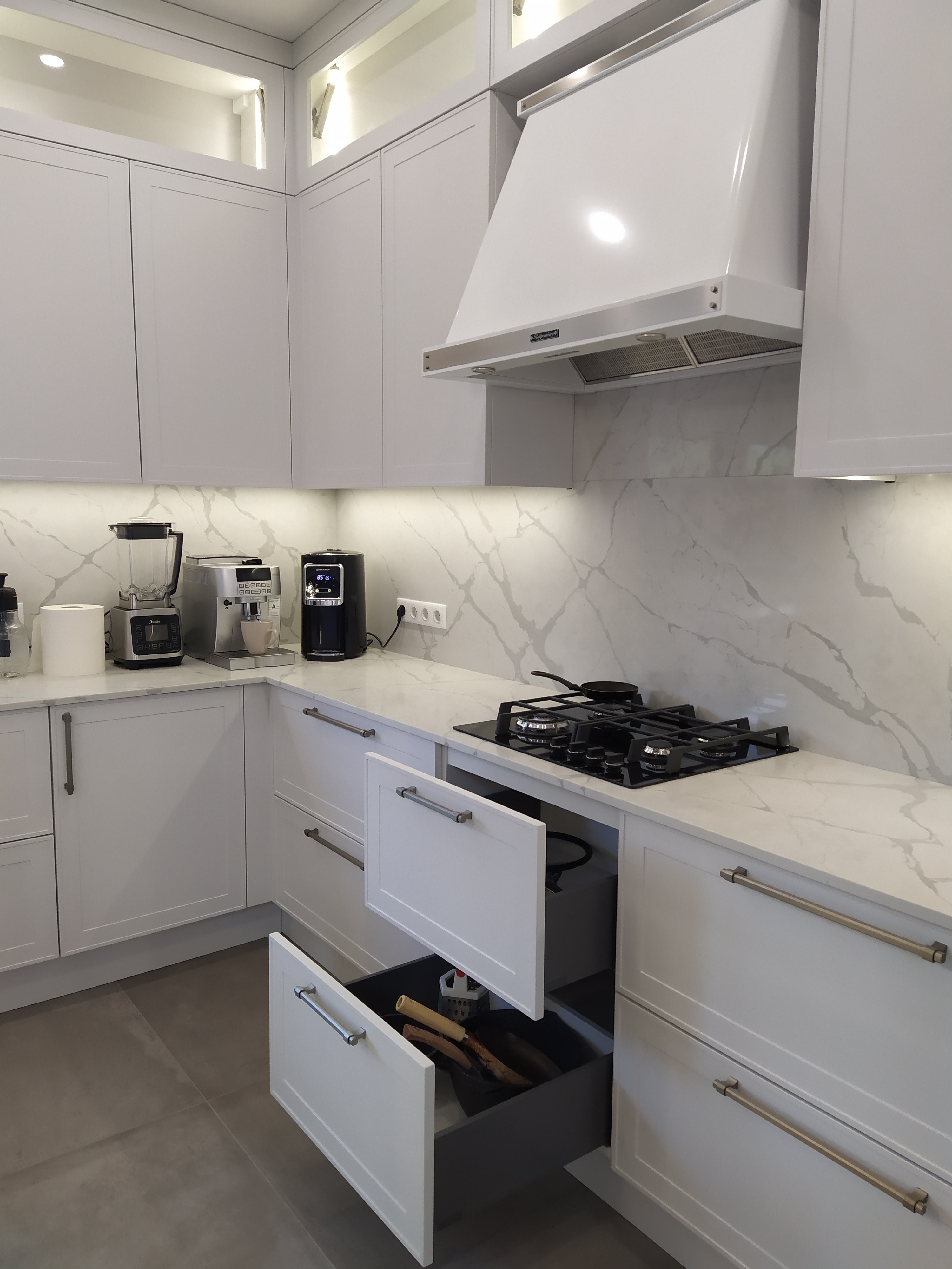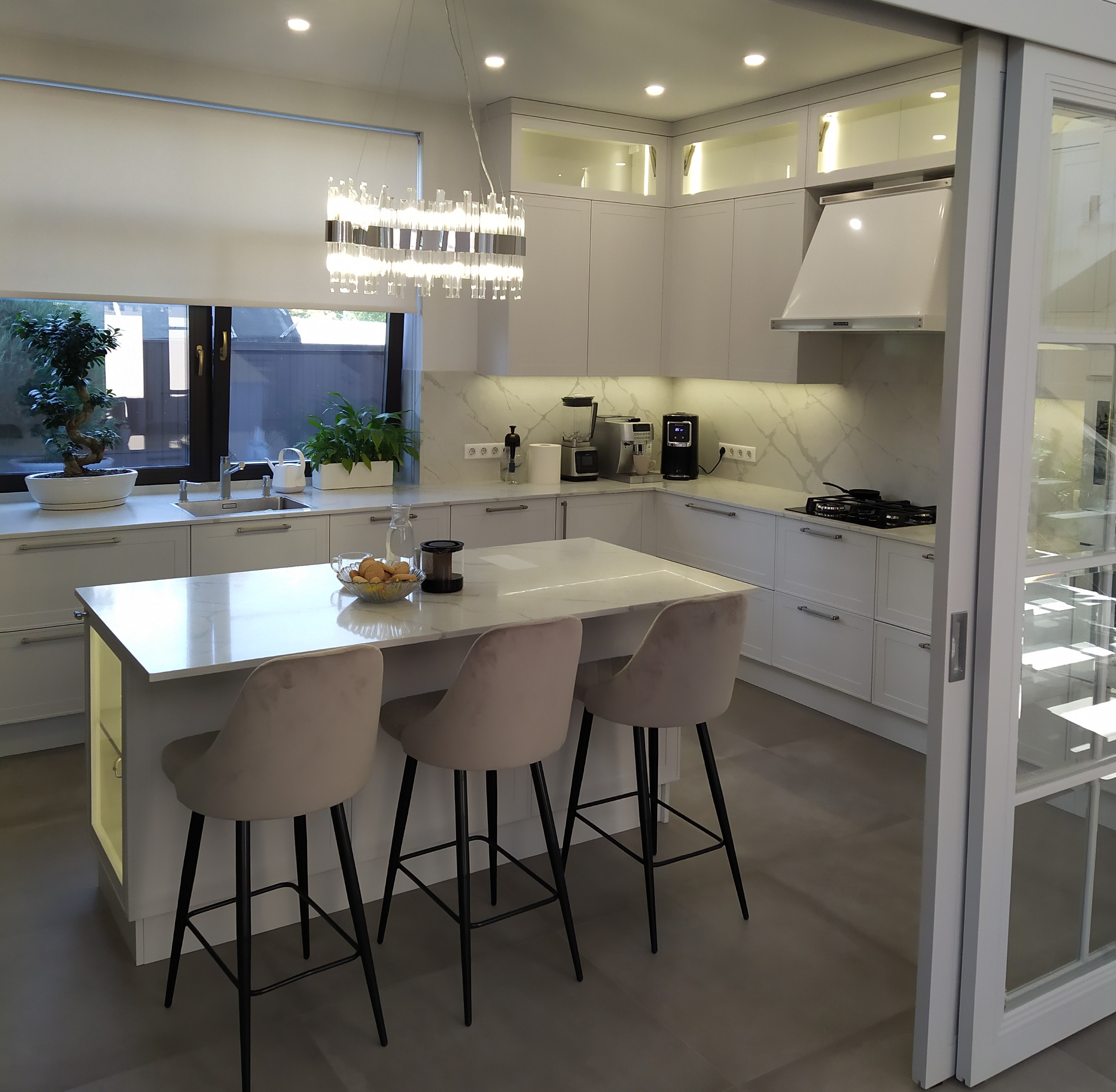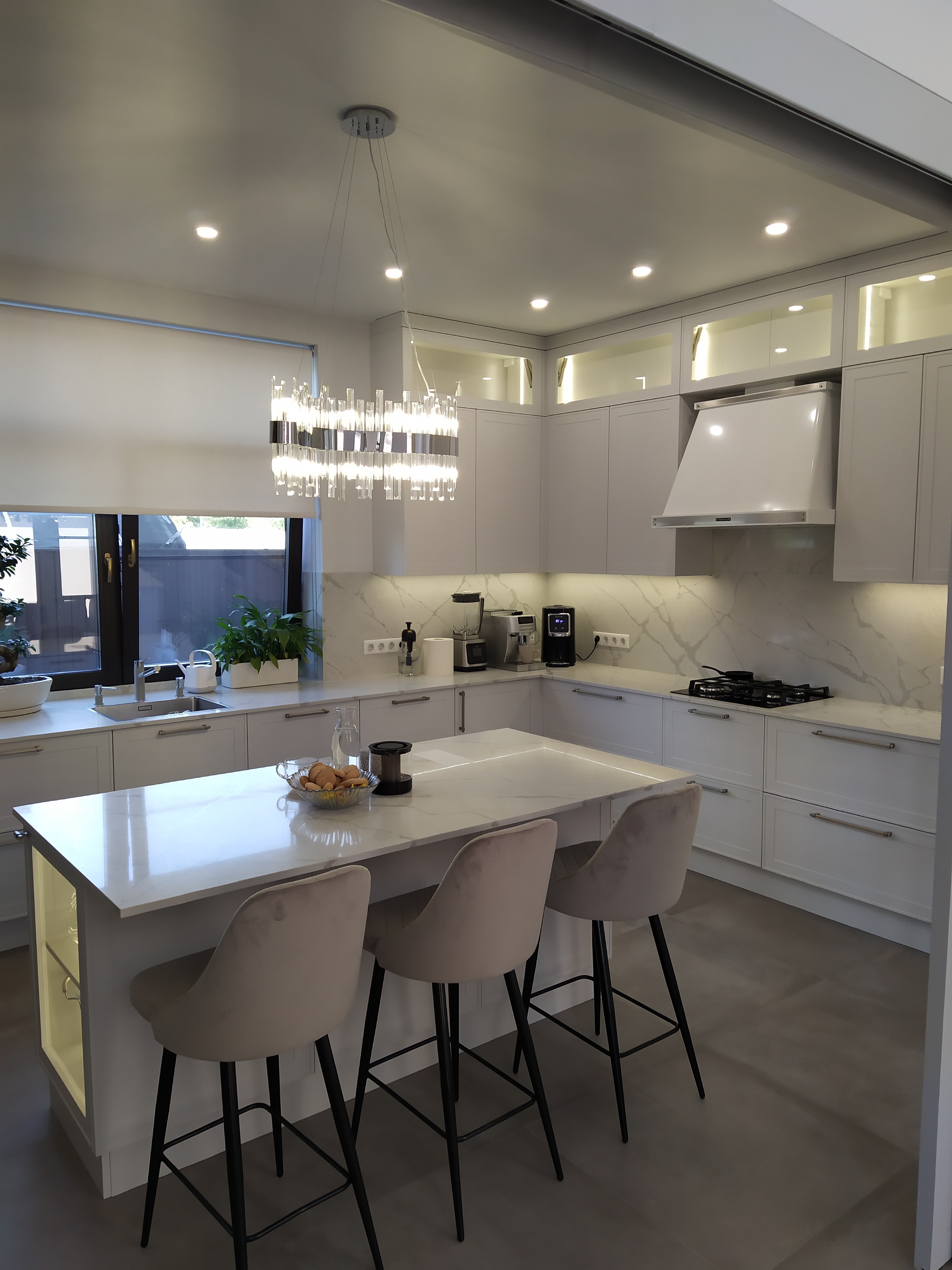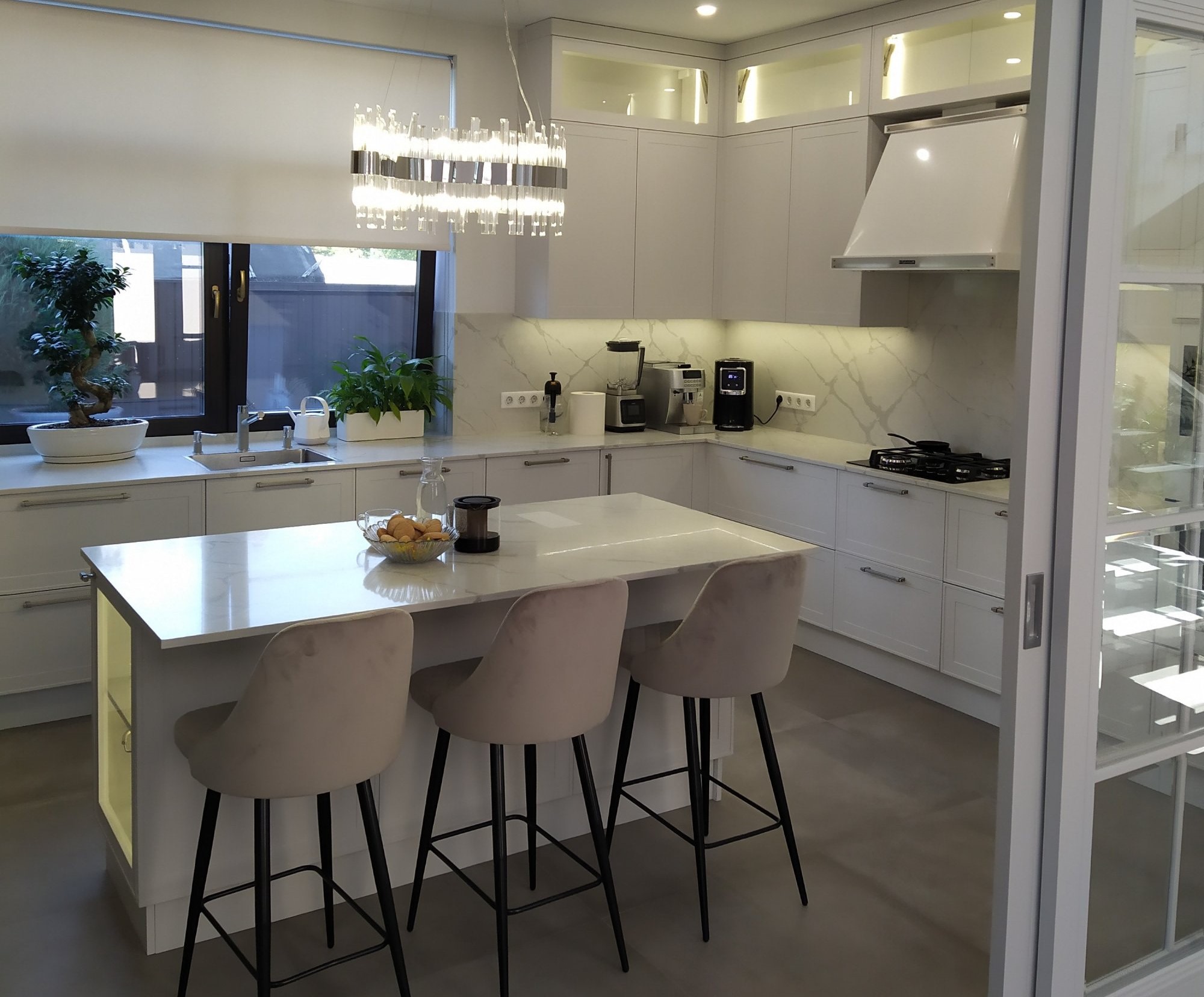 Кухня угловая Эмаль белая с островом
