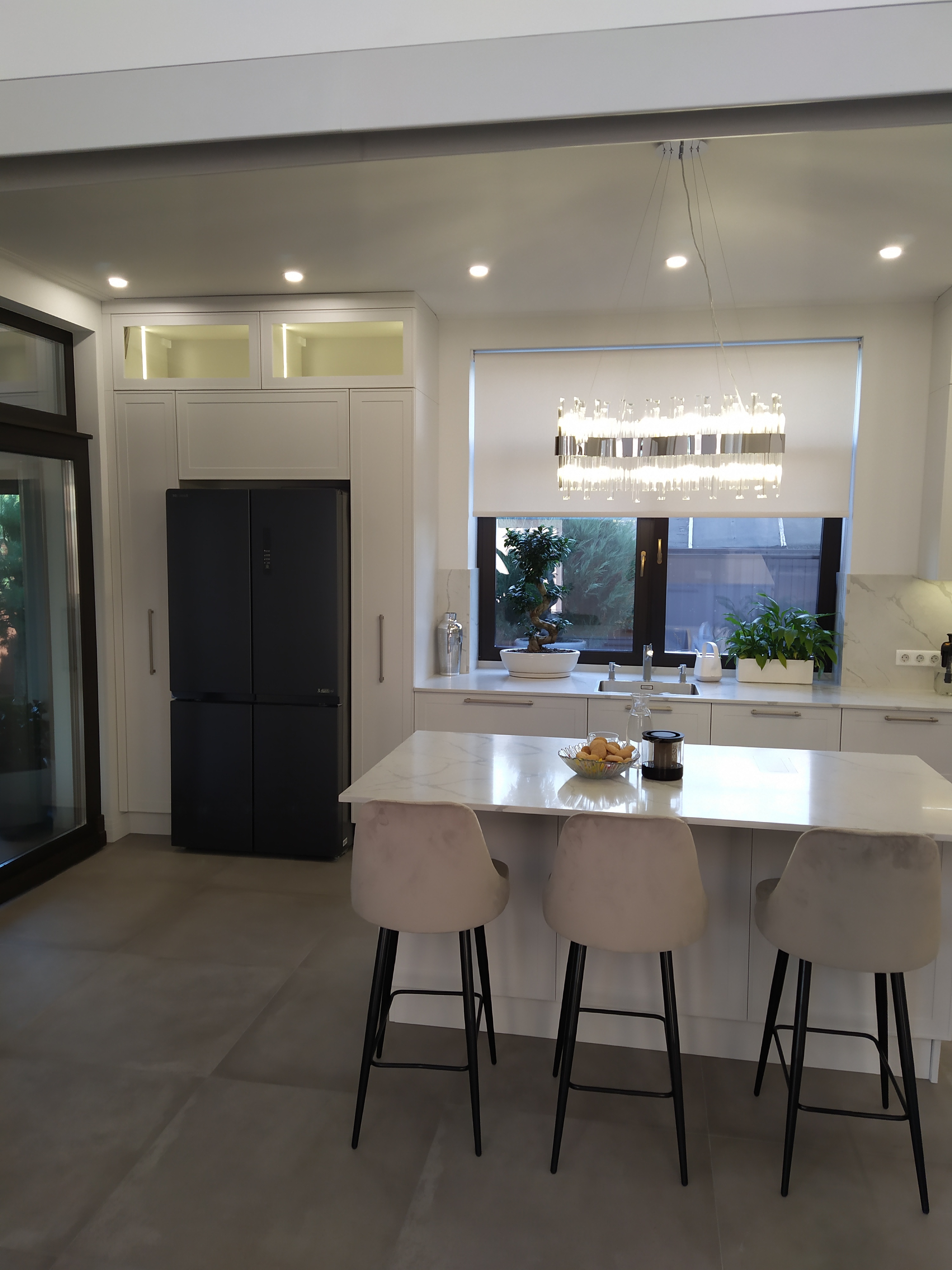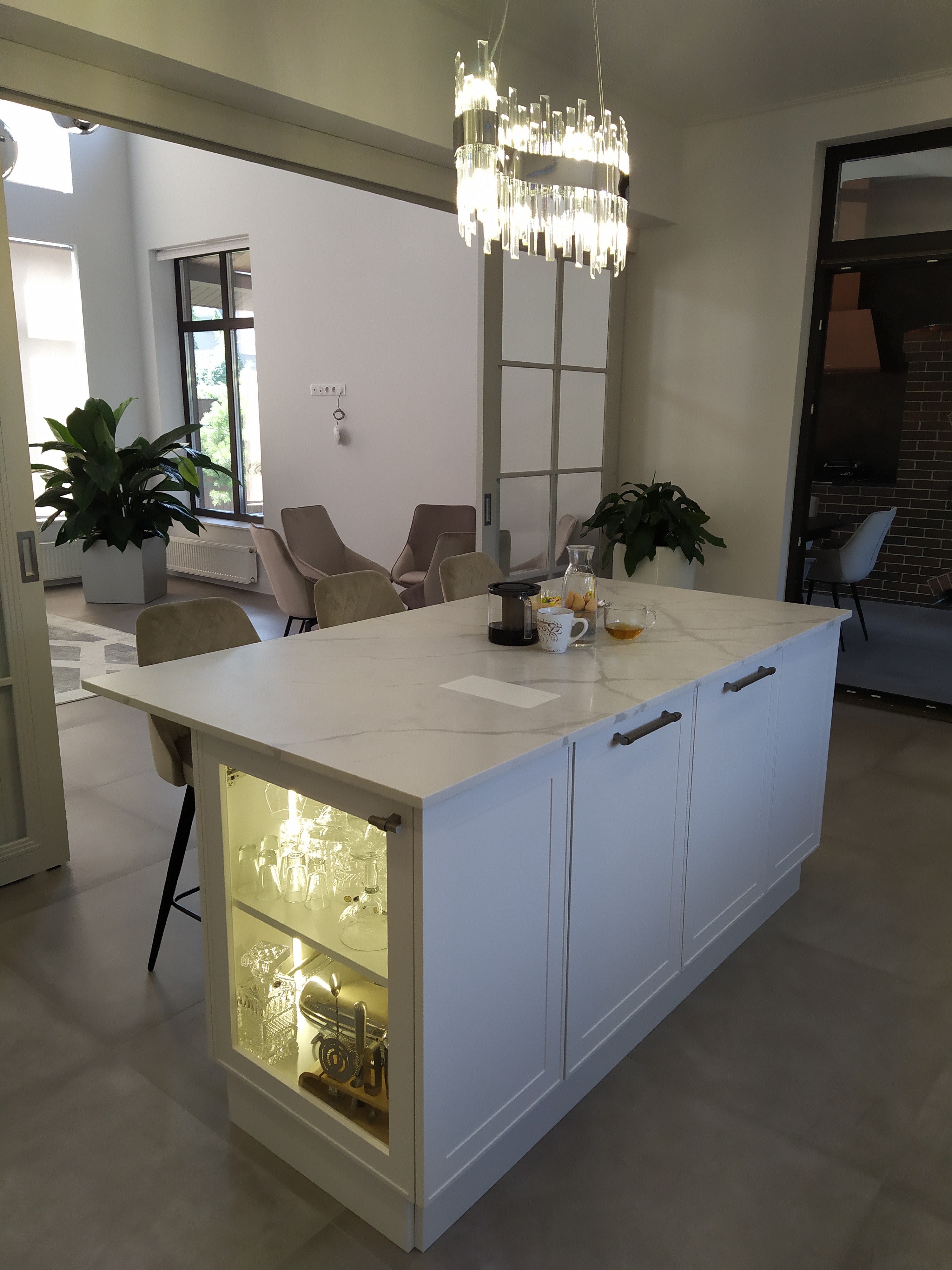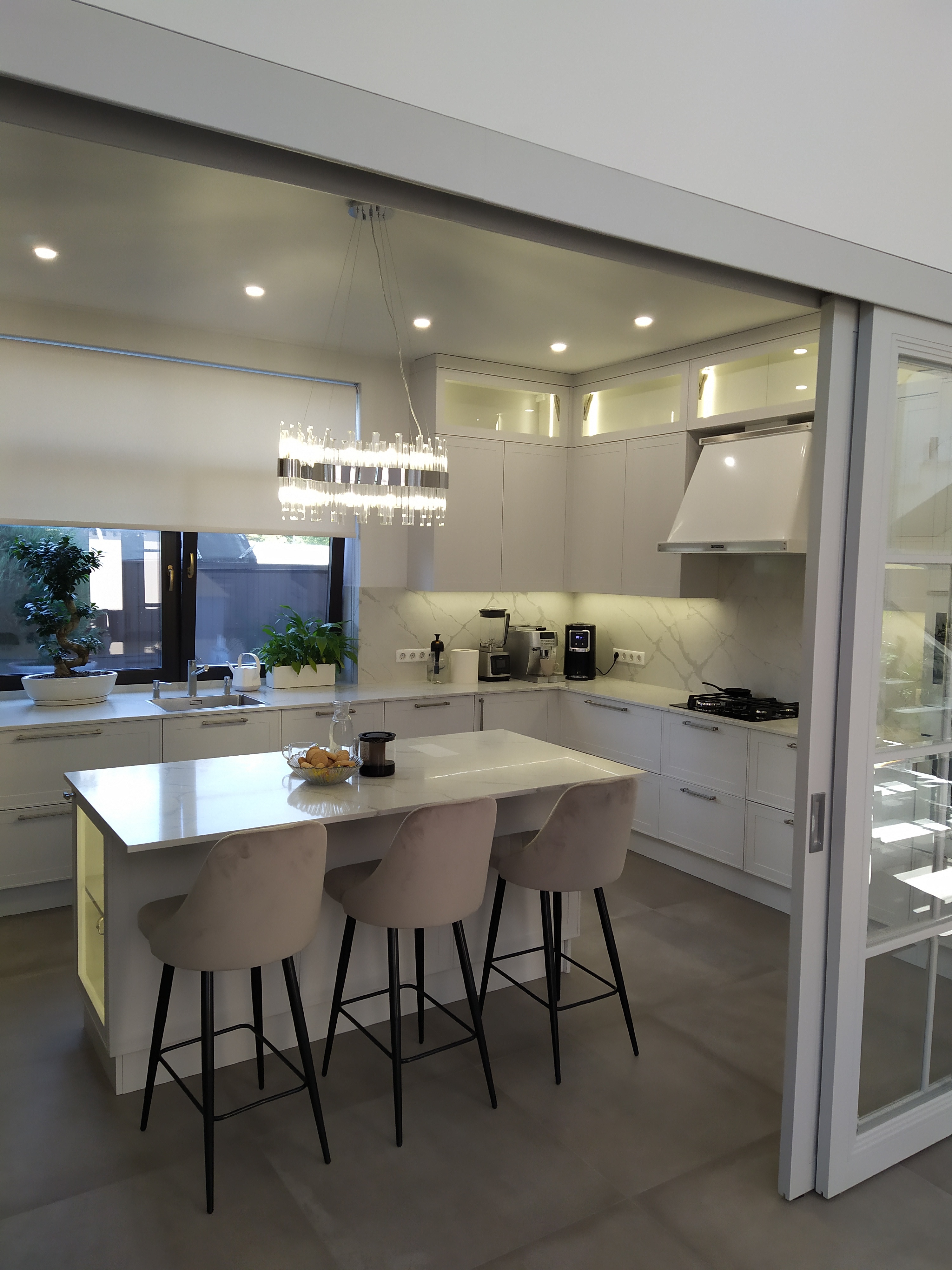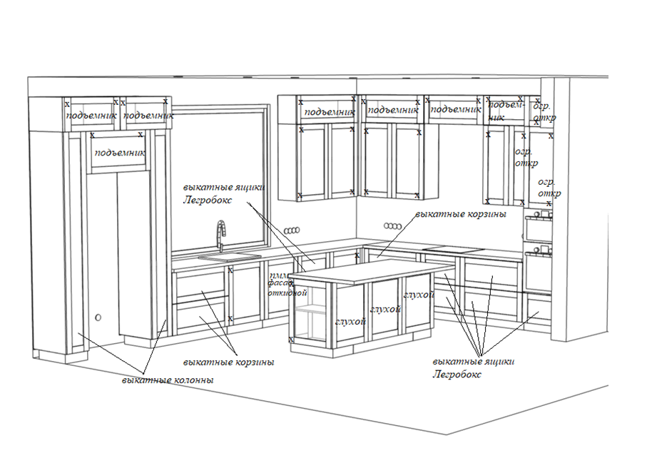Кухня угловая Эмаль белая с островом